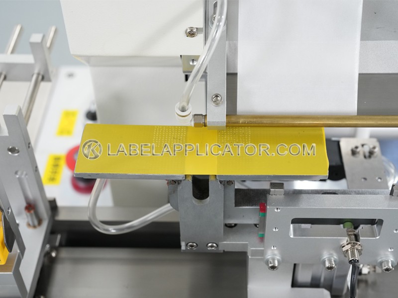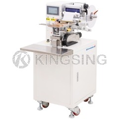 This is a wire harness half-folding labeling machine, the operator only needs to put the wire into the fixture, then it can automatically complete the label folding and labeling. This machine is not only suitable for round wires, but also for parallel twin wires and twisted pair wires.